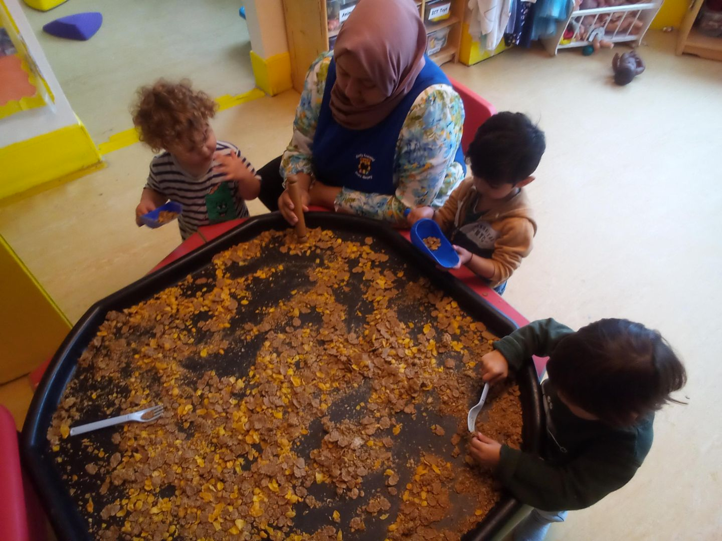 Staff encourage children's creativity. Younger children paint using their hands and fingers to create different animal patterns and prints.